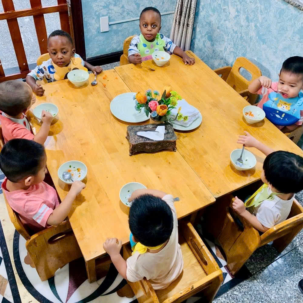 Từ 08:00, các bé quây quần thưởng thức bữa sáng nóng hổi từ căn bếp trường. Thực phẩm tươi sạch mang đến món cháo thơm, bánh mềm, hay mì đầy màu sắc. Các cô hướng dẫn từng bé tự cầm muỗng, trò chuyện ríu rít như gia đình nhỏ. Bữa sáng không chỉ nuôi dưỡng cơ thể, mà còn là khoảnh khắc yêu thương, chuẩn bị cho ngày tràn đầy năng lượng. -
