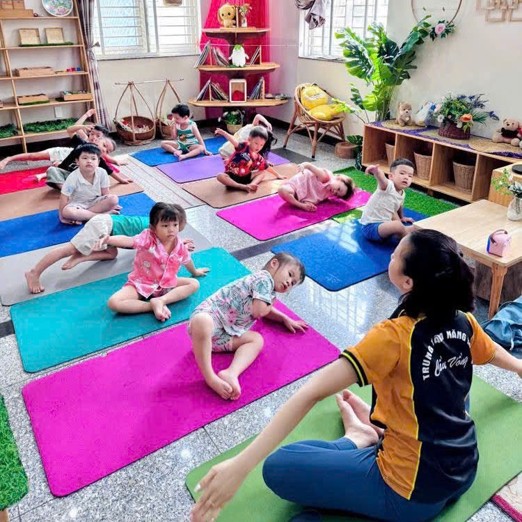 Mỗi tuần, các bé tại Victoria được trải nghiệm một tiết yoga và một tiết Aerobic – hai món quà nhỏ để nuôi dưỡng cả cơ thể lẫn tâm hồn. Trong giờ yoga, các cô dẫn dắt các “mầm non nhỏ” qua những động tác nhẹ nhàng, kết hợp nhạc êm và câu chuyện, giúp các bé thư giãn, cảm nhận sự bình yên trong từng hơi thở. Tiết Aerobic lại rộn ràng năng lượng với thầy giáo, mang đến những điệu nhảy vui tươi và vận động sôi động. Các bé nhún nhảy, cười giòn tan, tự tin tỏa sáng qua từng bước chân.