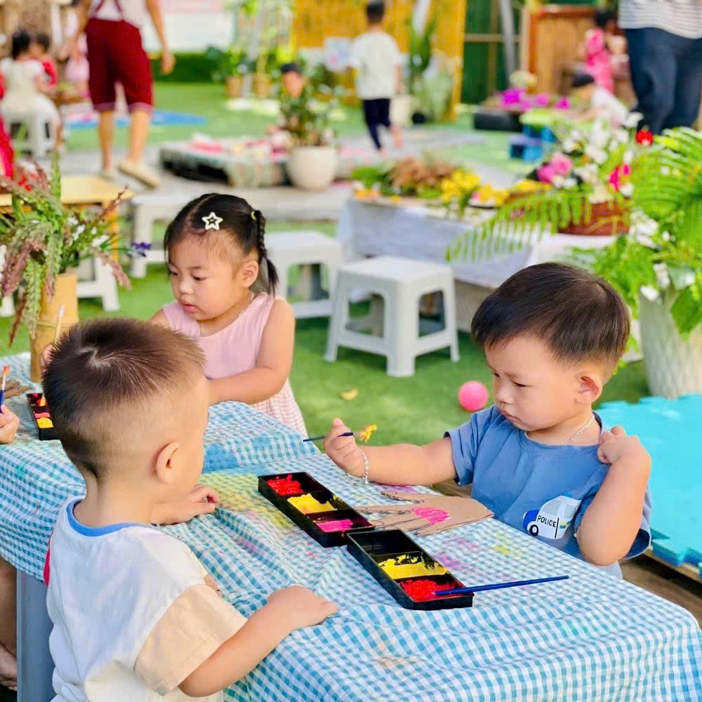 Môi trường học tập tại trường chúng tôi được thiết kế tỉ mỉ để khơi dậy sự sáng tạo và thúc đẩy sự phát triển toàn diện cho trẻ. Chúng tôi nói không với TV, thay vào đó tập trung vào các hoạt động tương tác thực tế, giúp các bé học hỏi thông qua trải nghiệm sống động và ý nghĩa. Lớp học được bố trí thoáng đãng, tràn ngập ánh sáng tự nhiên, tạo cảm giác dễ chịu và kích thích tư duy. Bên cạnh đó, khu vui chơi ngoài trời rộng rãi là nơi các bé thỏa sức vận động, khám phá thế giới xung quanh. Đội ngũ giáo viên tận tâm, giàu kinh nghiệm, áp dụng phương pháp giảng dạy linh hoạt, sinh động, không gò bó, luôn khuyến khích trẻ tự do bày tỏ ý kiến và phát huy cá tính riêng. Chúng tôi chú trọng xây dựng một không gian học tập an toàn, gần gũi, nơi các bé không chỉ phát triển về trí tuệ mà còn được rèn luyện kỹ năng sống thiết yếu. Đây chính là nền tảng để trẻ tự tin, độc lập và sẵn sàng cho những hành trình phía trước trong cuộc sống! -